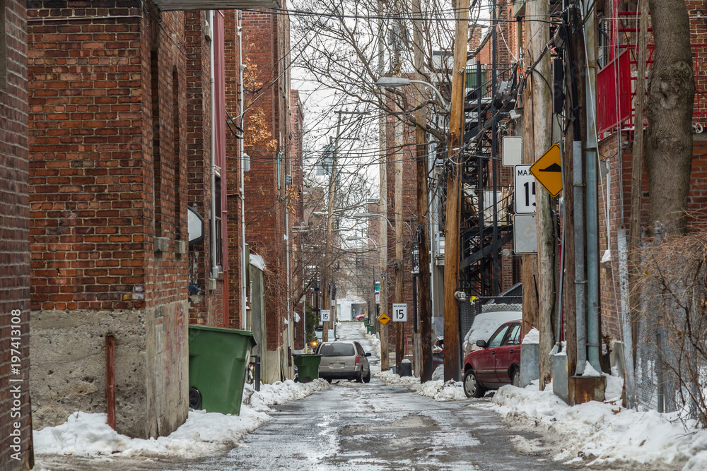 Typical North American Residential Dead End Alley Street Covered In Snow In A Residential Part Of Montreal Quebec Canada Stock Photo Adobe Stock